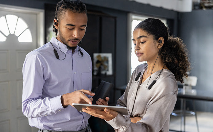 The open-ear design keeps your ears free, so you’ll always hear when someone calls out to you, and you can keep the conversation going without ever removing your earbuds.